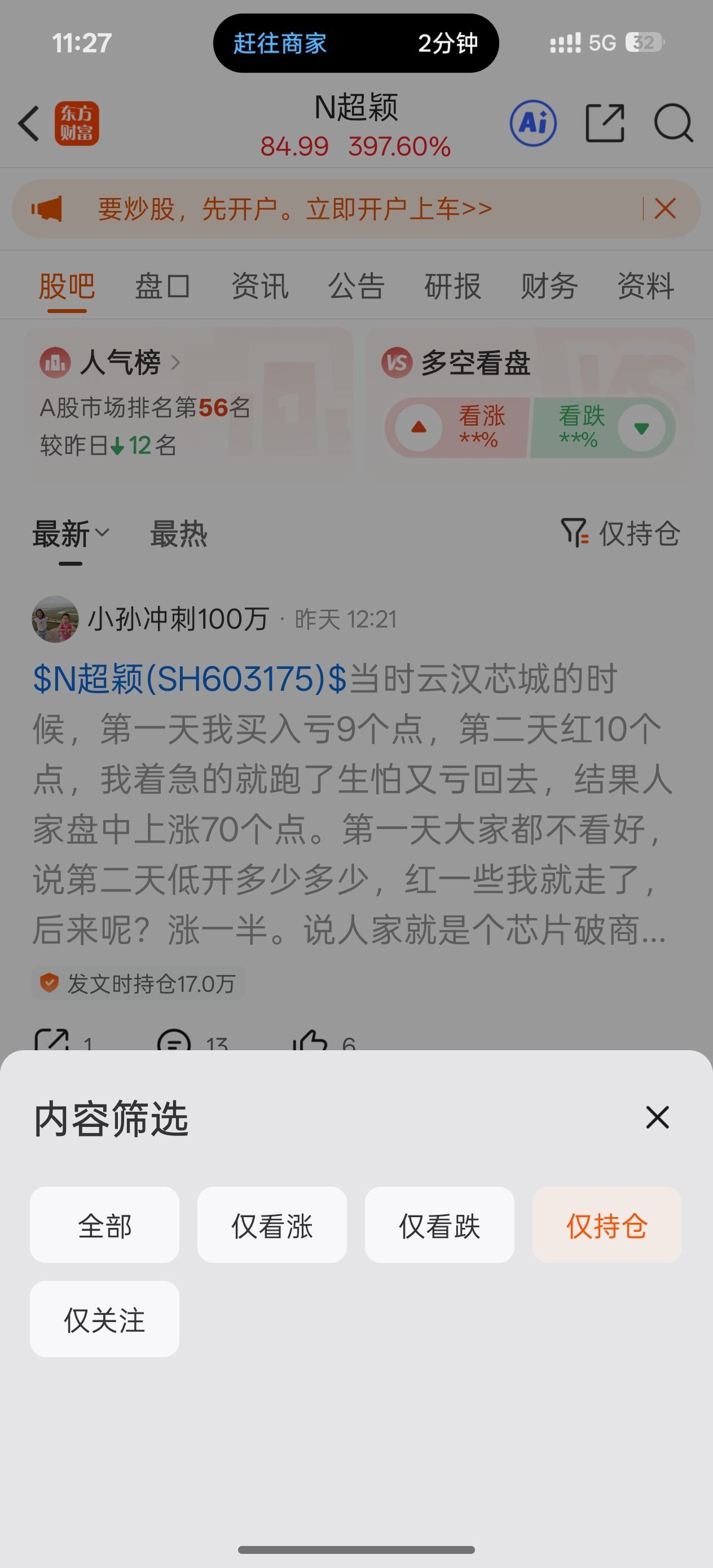 看持仓的的人,少之又少,就放心了。大多数人没持仓在那里YY。