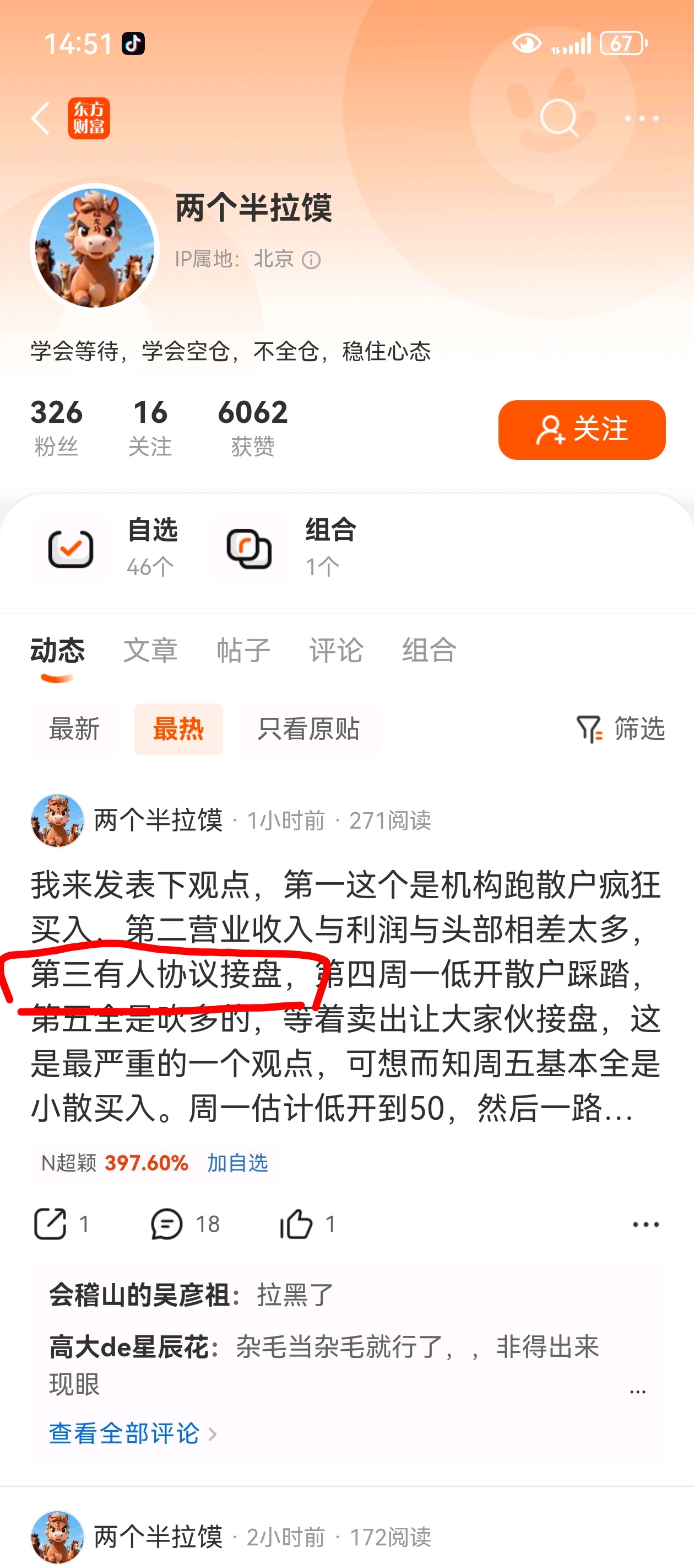 我想问问大家,刚刚看到有个名字叫“两个半拉摸”的东西,说这个股第一天交易协议接盘