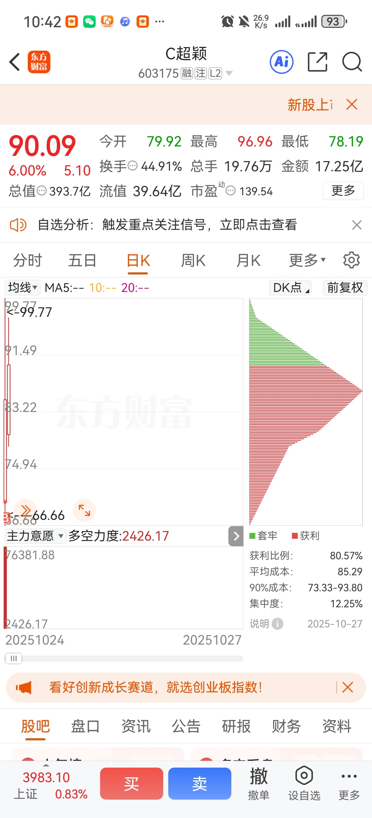 $C超颖(SH603175)$ 不过100,随便你怎么砸,我就不跑