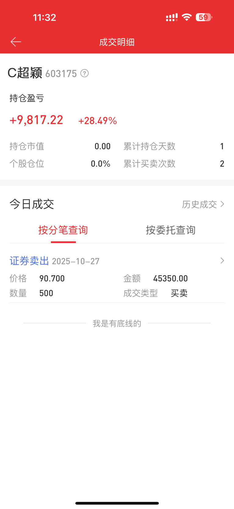 $C超颖(SH603175)$ 上周开盘接了500股 知足了!加油超颖!