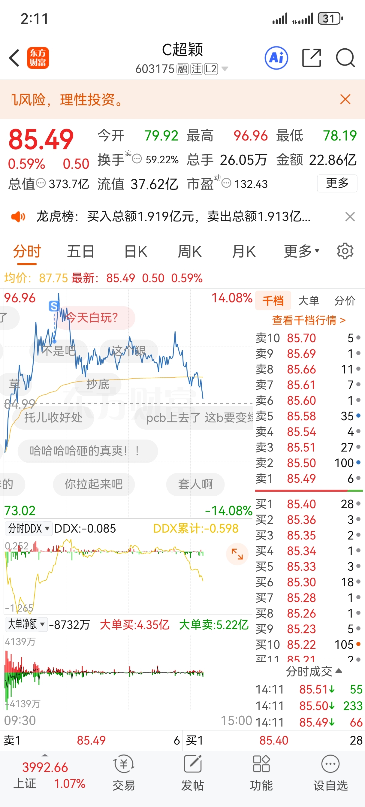 温馨提示: 1.根据《证券法》规定,禁止编造、传播虚假信息或者误导性信息,扰乱证券市场;2.用户在本社区发表的所有资料、言论等仅代表个人观点,与本网站立场无关,不对您构成任何投资建议。用户应基于自己的独立判断,自行决定证券投资并承担相应风险。《东方财富社区管理规定》