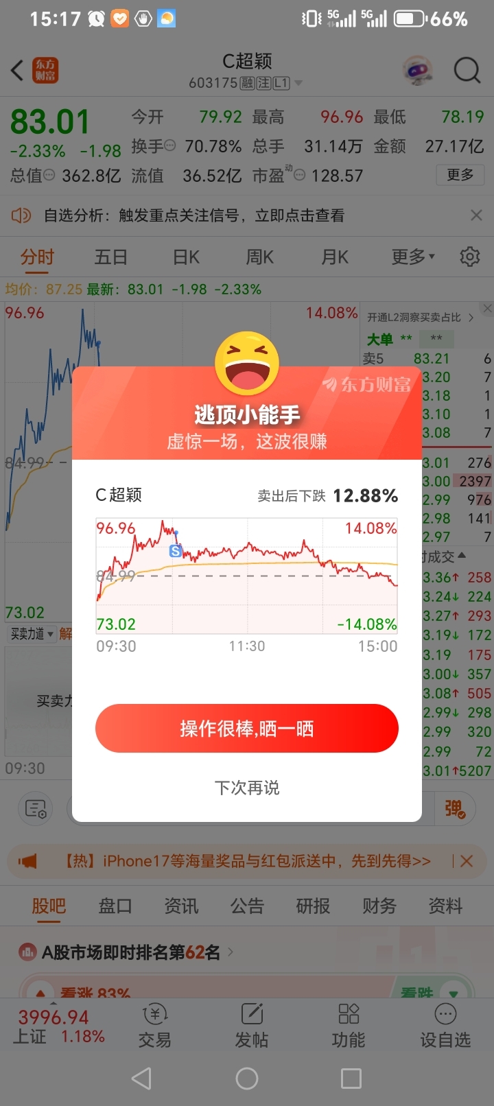 $C超颖(SH603175)$ 可惜了没卖在最高点