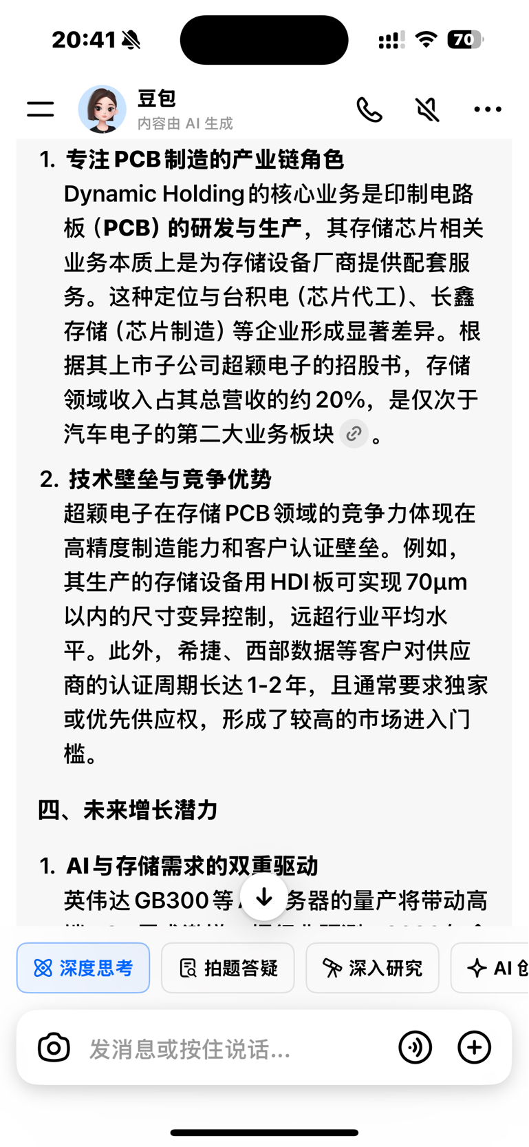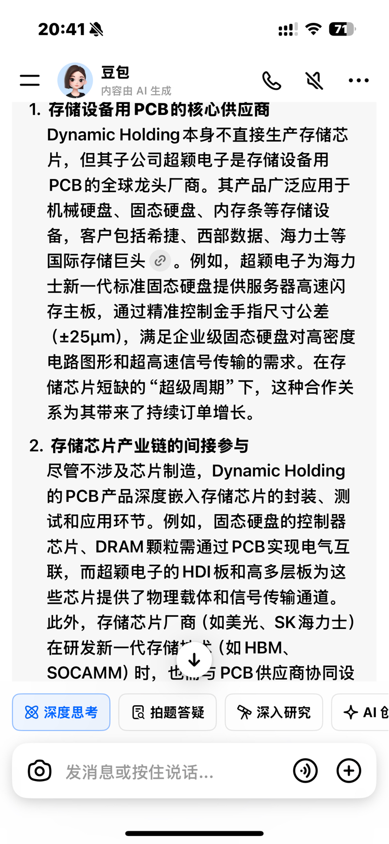 英伟达供应商,承接胜宏百分之20业务,存储海力士供应商,存储业务占比百分之20,