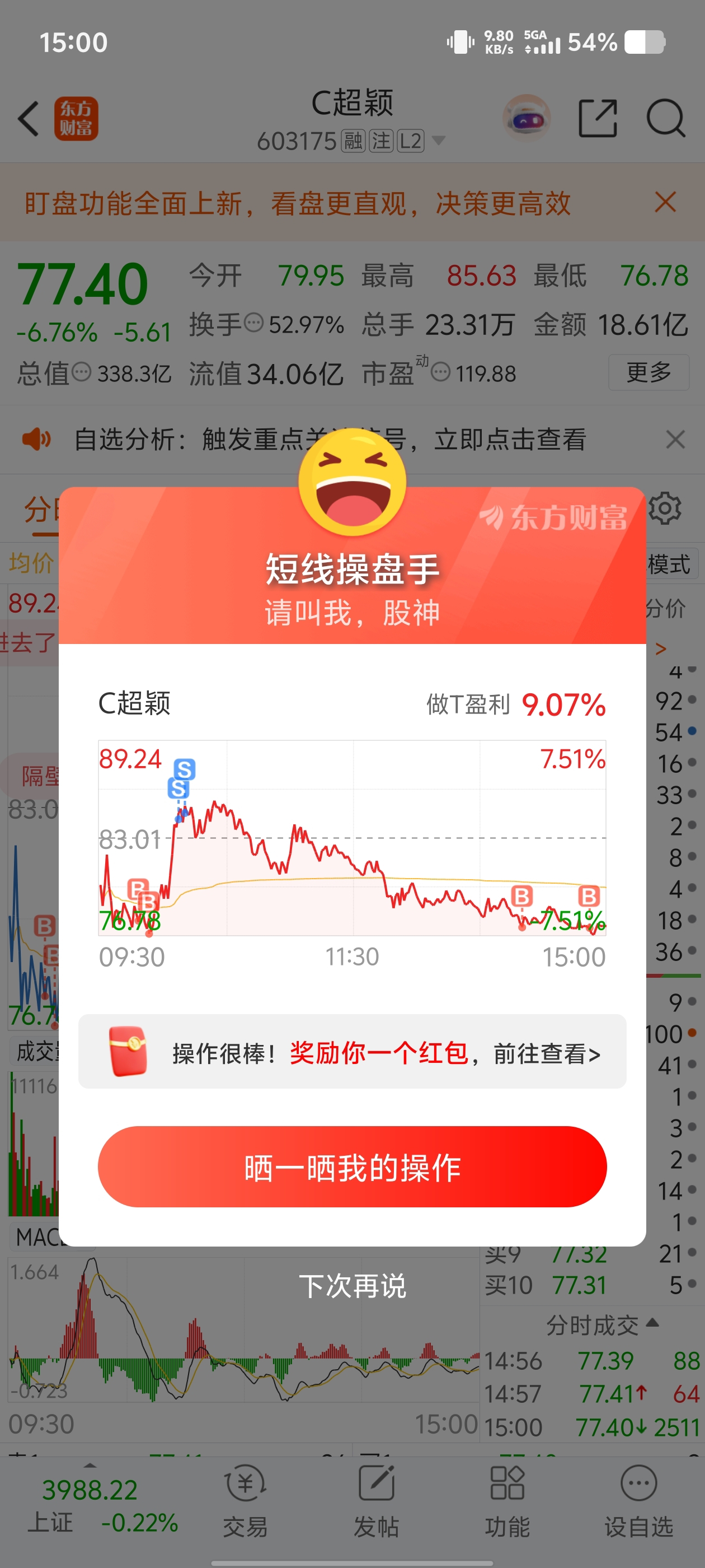 $C超颖(SH603175)$ 一般我是不会买回去的,高看你一眼,就赌明天C4了!