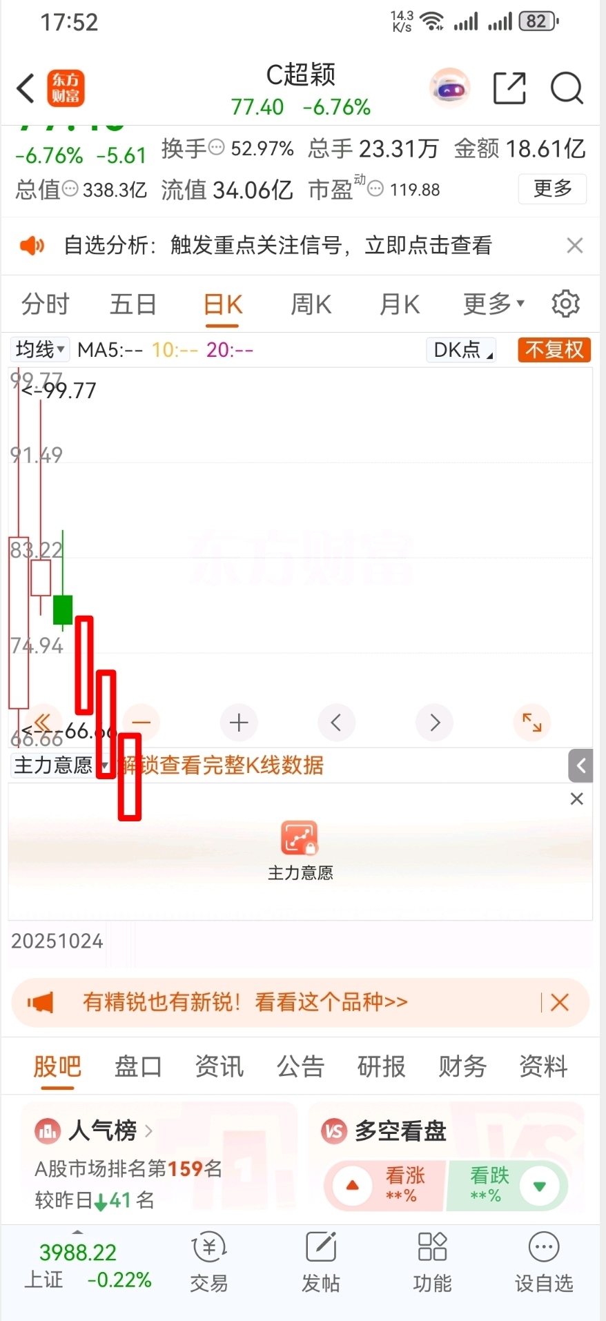 $C超颖(SH603175)$ 明天主板这个第四天必跌,预计明天开盘70附近,盘中冲高72-73,然后下杀到68左右收盘,周四继续低开低走,周五下60。立帖为证