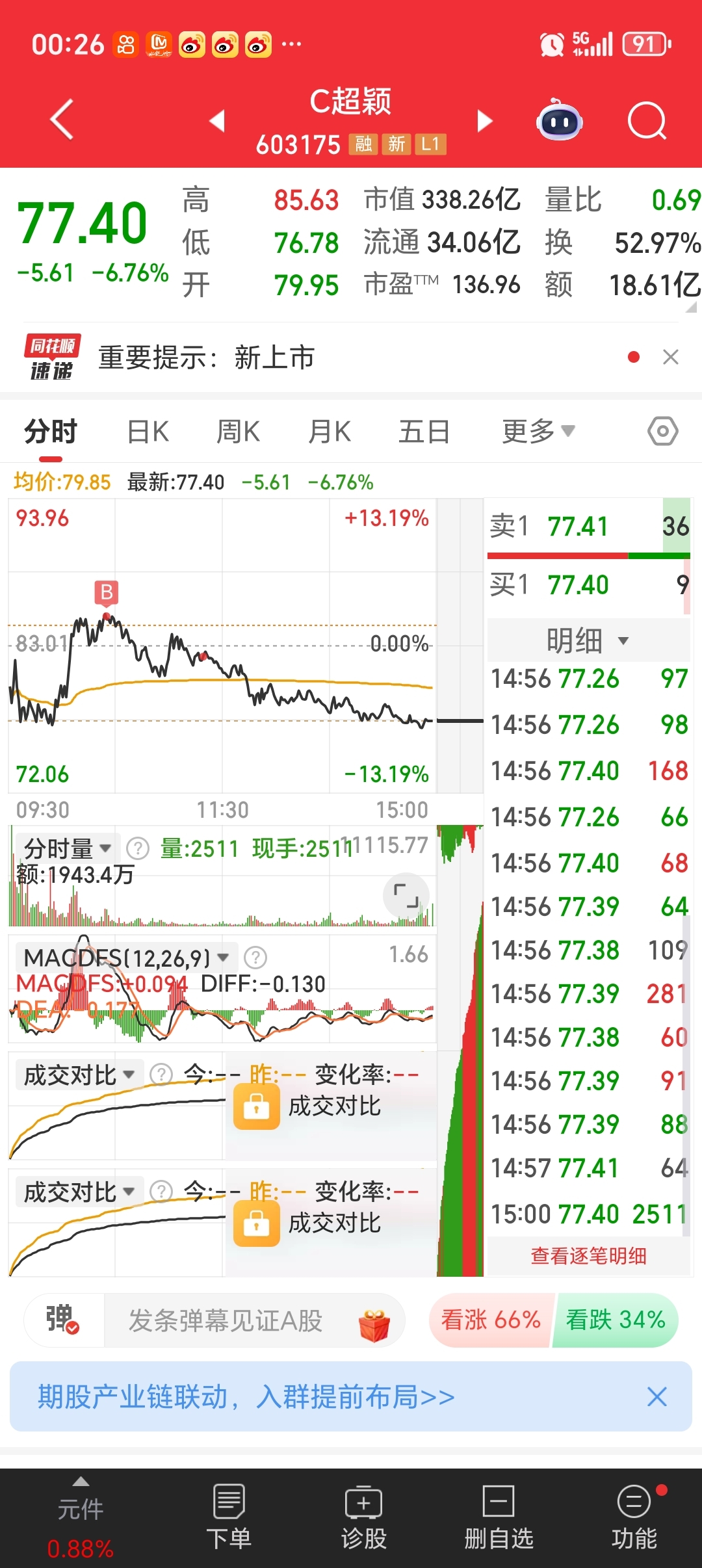 $C超颖(SH603175)$ 买在最高点
