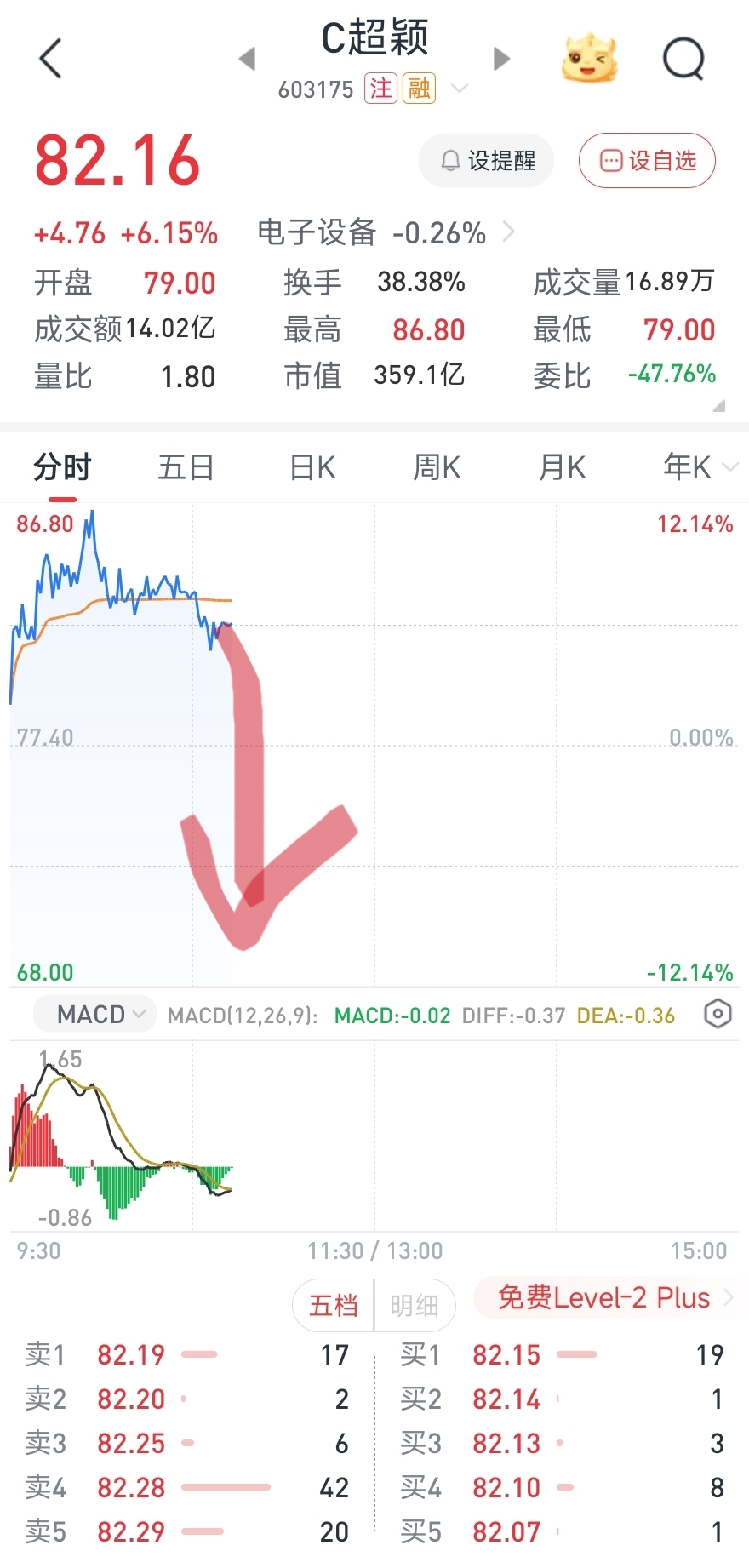 $C超颖(SH603175)$ 又是长长的上影线,套得牢牢的。