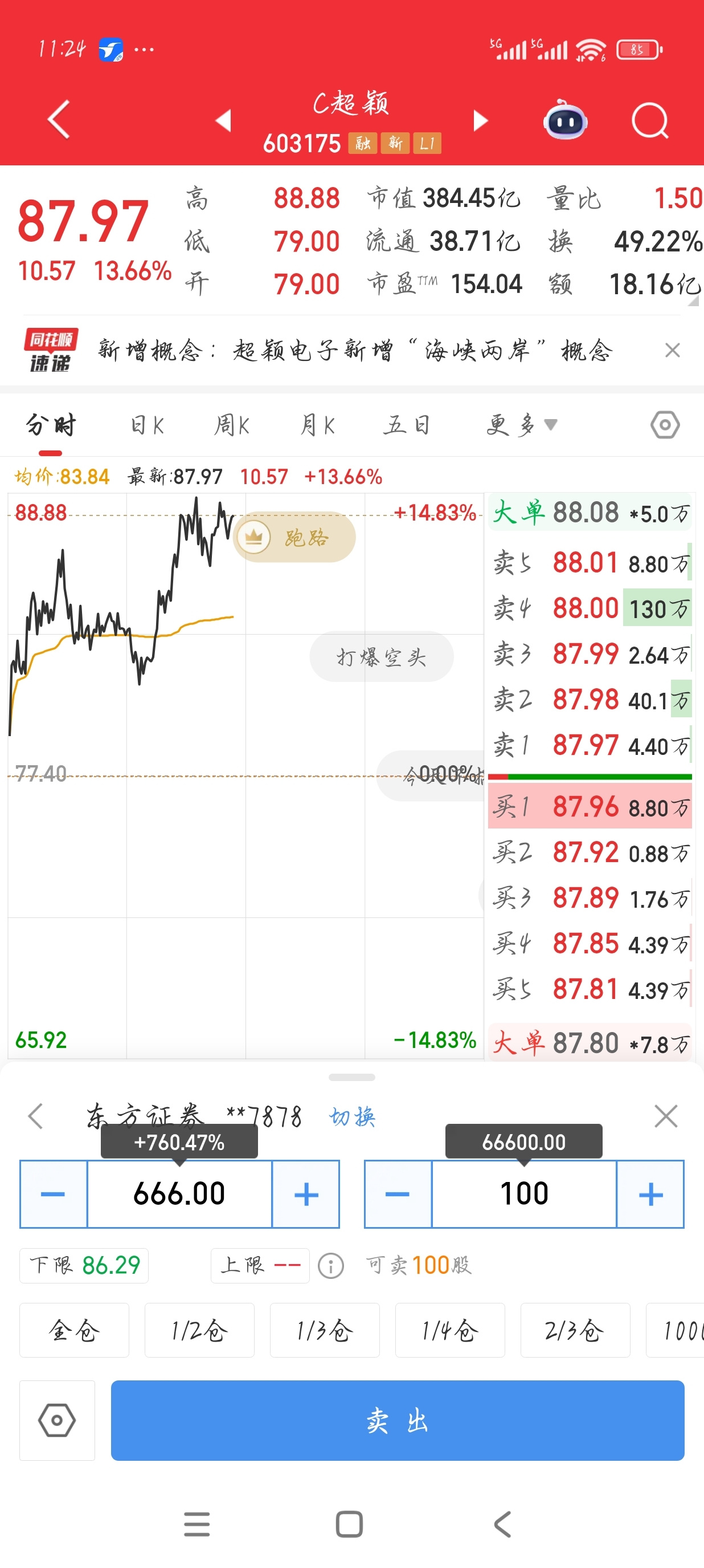 $C超颖(SH603175)$ 整个上午都没有埋人的动作,收盘收到接近最高点,充分给昨天前天的人解套的机会,话不多说,看我的吧