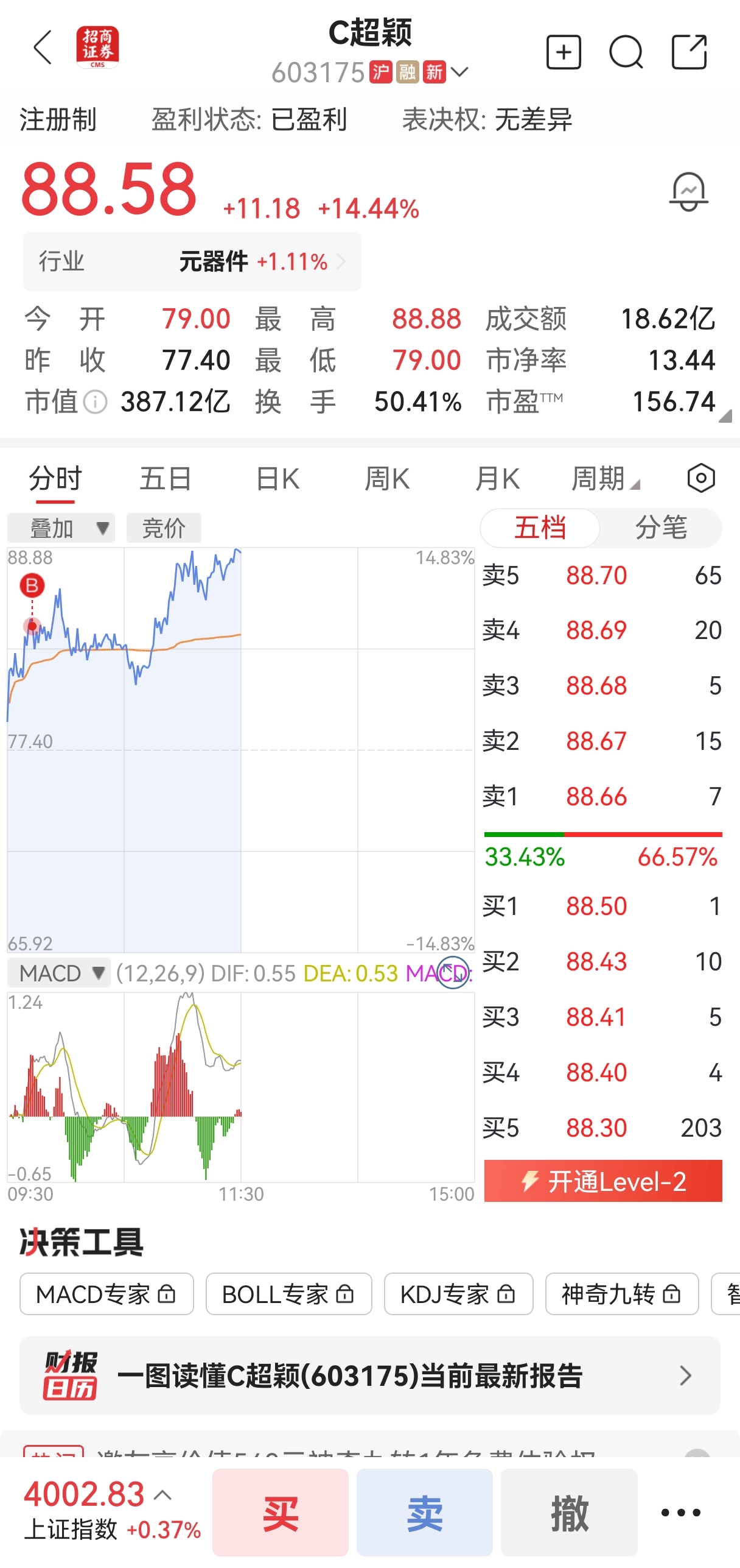 $C超颖(SH603175)$ 下午能破88.88 来几个林婷吗?