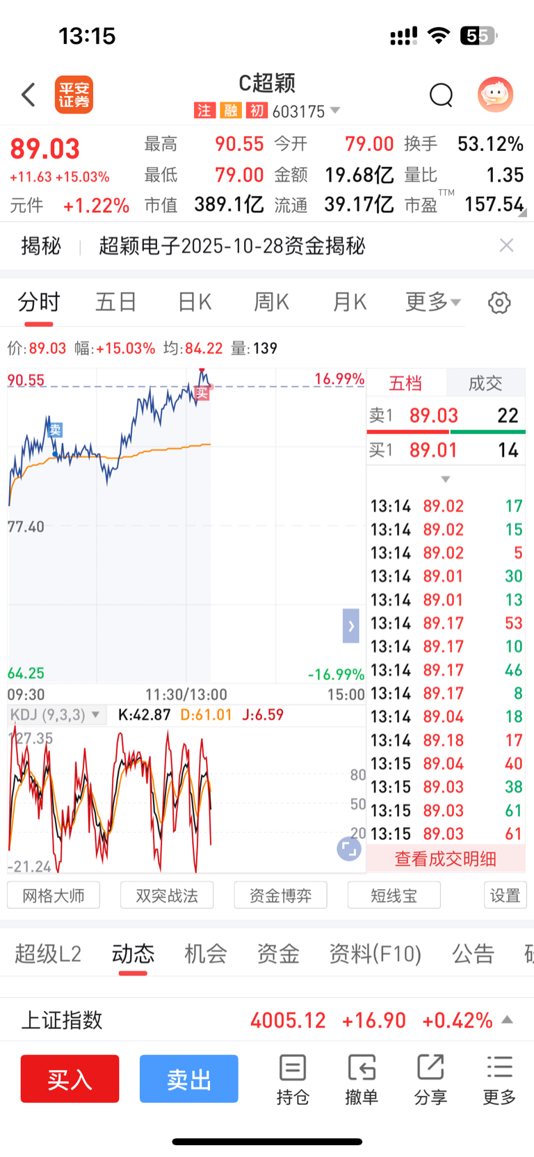 $C超颖(SH603175)$ 真正韭菜,早盘拿不住卖了,现在又追高进来