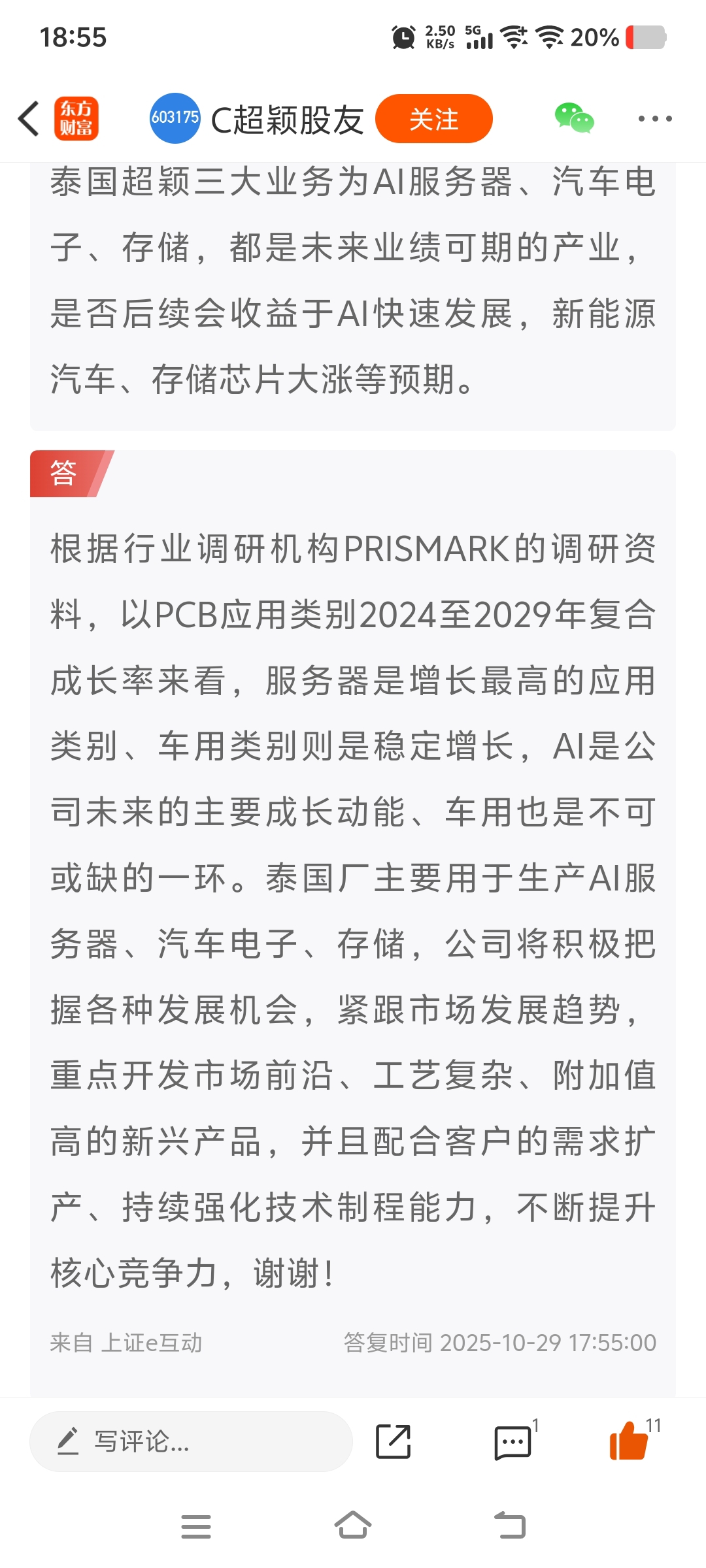 $C超颖(SH603175)$ 这董秘知识点太广了,了解了,超颖的泰国工厂业务ai服务器,汽车电子,存储,未来可期。