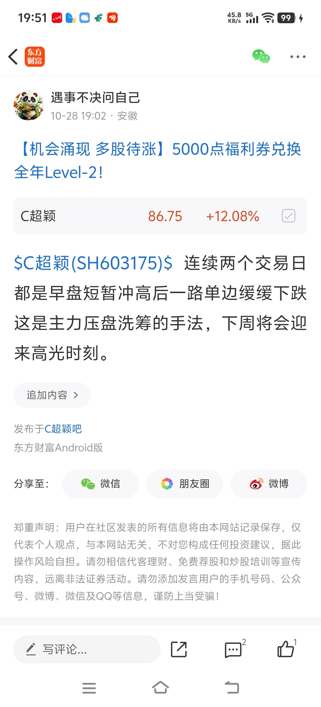温馨提示: 1.根据《证券法》规定,禁止编造、传播虚假信息或者误导性信息,扰乱证券市场;2.用户在本社区发表的所有资料、言论等仅代表个人观点,与本网站立场无关,不对您构成任何投资建议。用户应基于自己的独立判断,自行决定证券投资并承担相应风险。《东方财富社区管理规定》