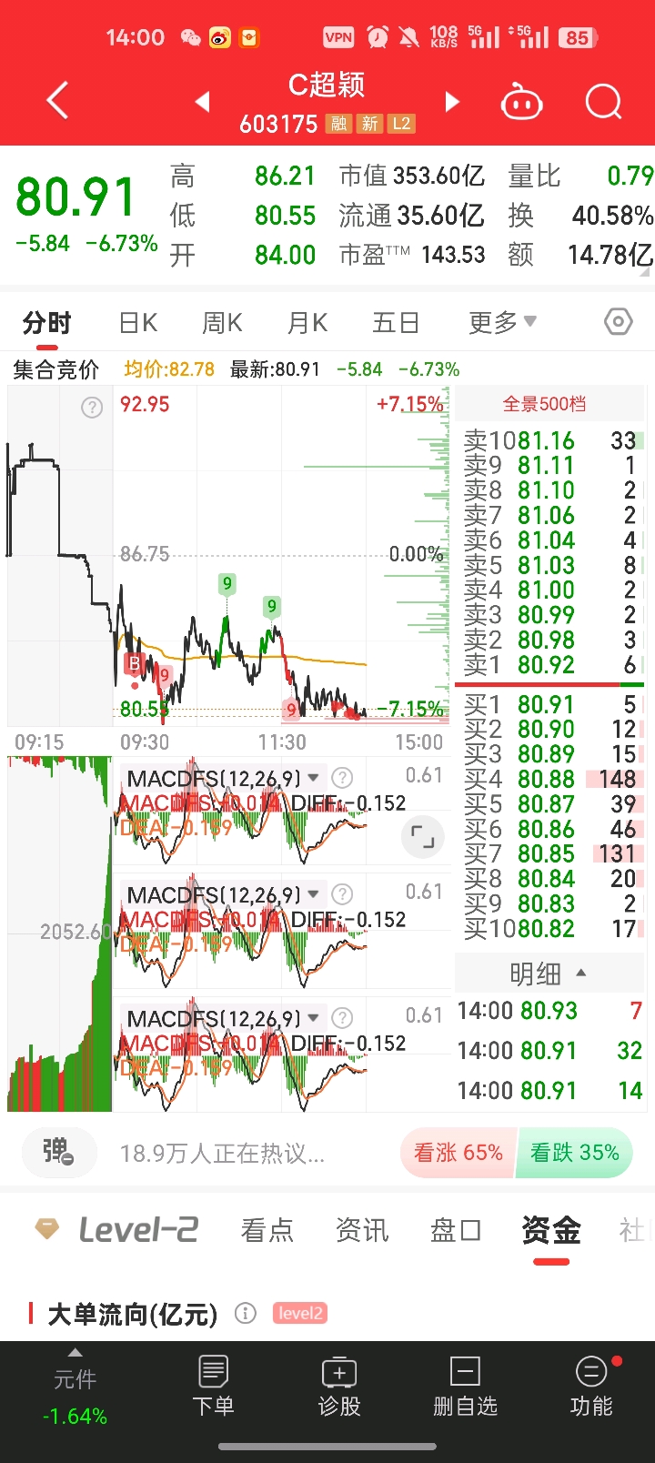 $C超颖(SH603175)$ 留一半,尾盘再加!!!!