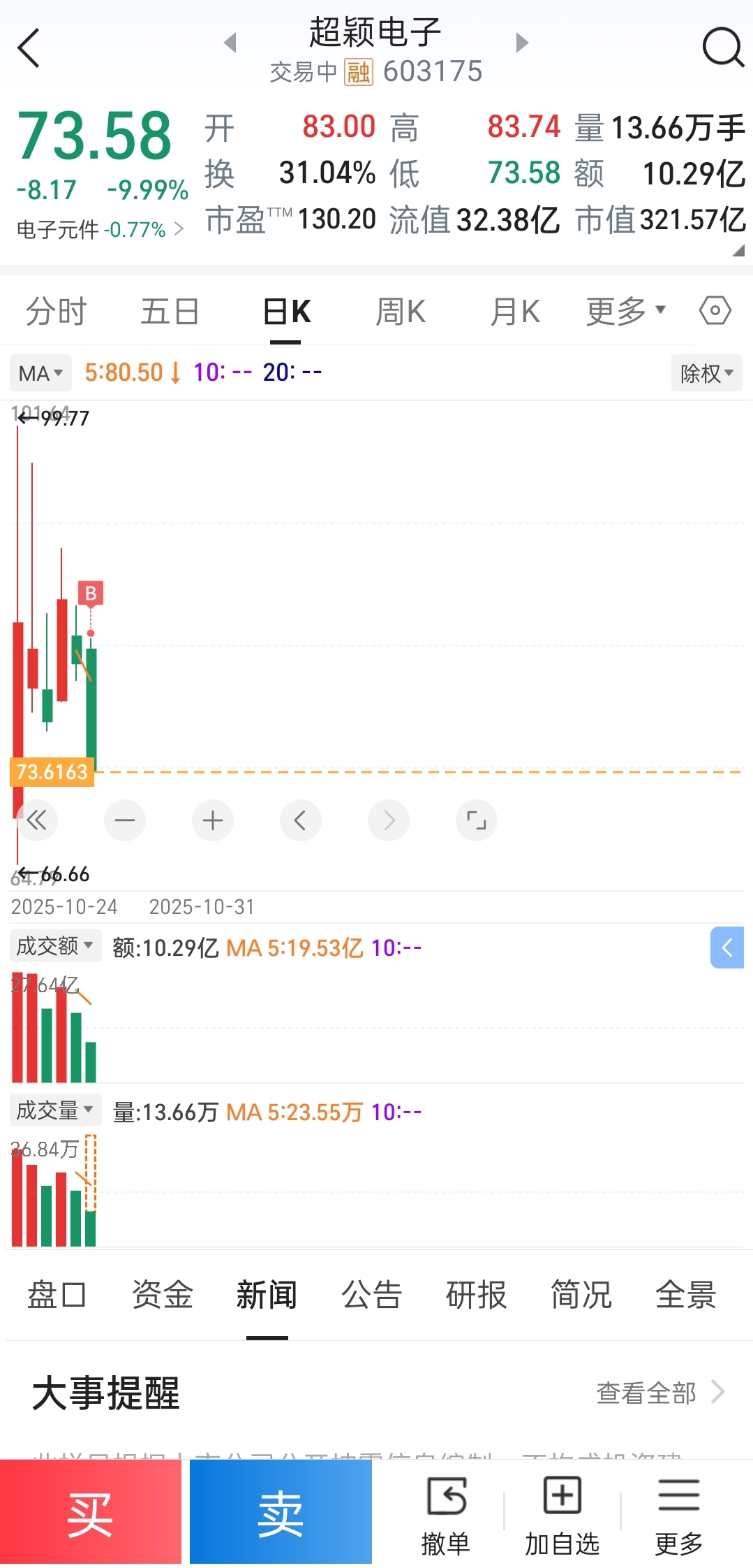 $超颖电子(SH603175)$ 1万股全仓,搏击了。