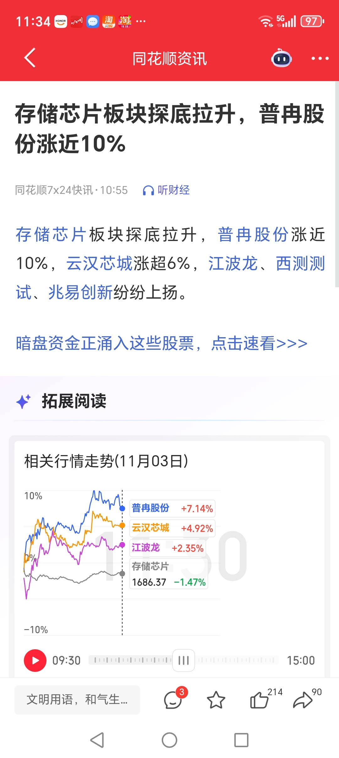 $哈哈哈笑死,跌的时候是储存芯片,人家早上探底回升你就不是储存芯片。看来还是散户