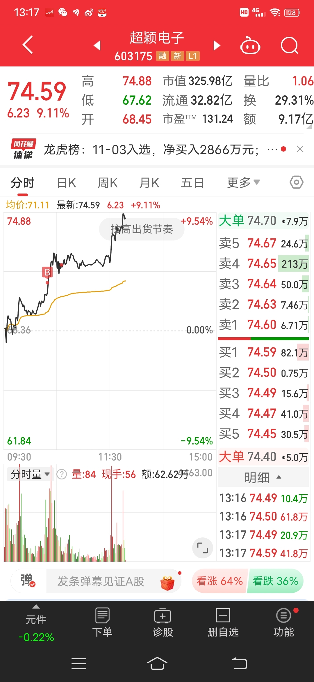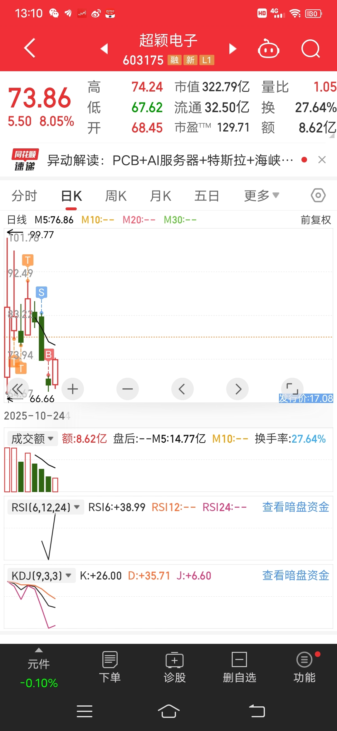 超颖快涨停吧,我都亏了好几天了!今天把联环药业卖了都拉进来了。