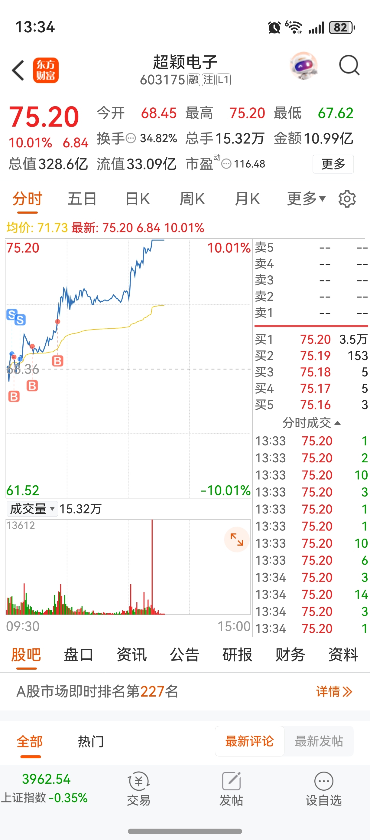 $超颖电子(SH603175)$ 还好买回来了,做了个反T