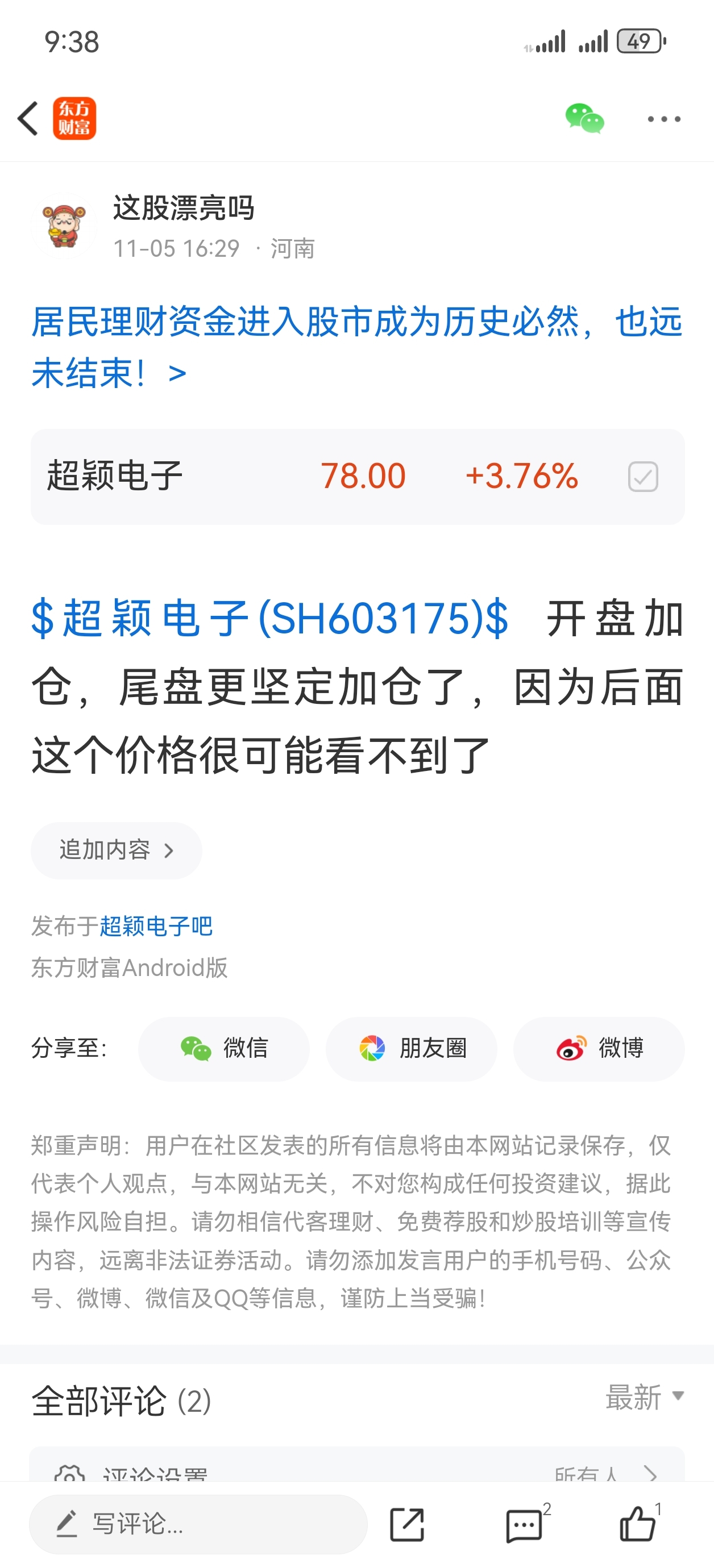 温馨提示: 1.根据《证券法》规定,禁止编造、传播虚假信息或者误导性信息,扰乱证券市场;2.用户在本社区发表的所有资料、言论等仅代表个人观点,与本网站立场无关,不对您构成任何投资建议。用户应基于自己的独立判断,自行决定证券投资并承担相应风险。《东方财富社区管理规定》