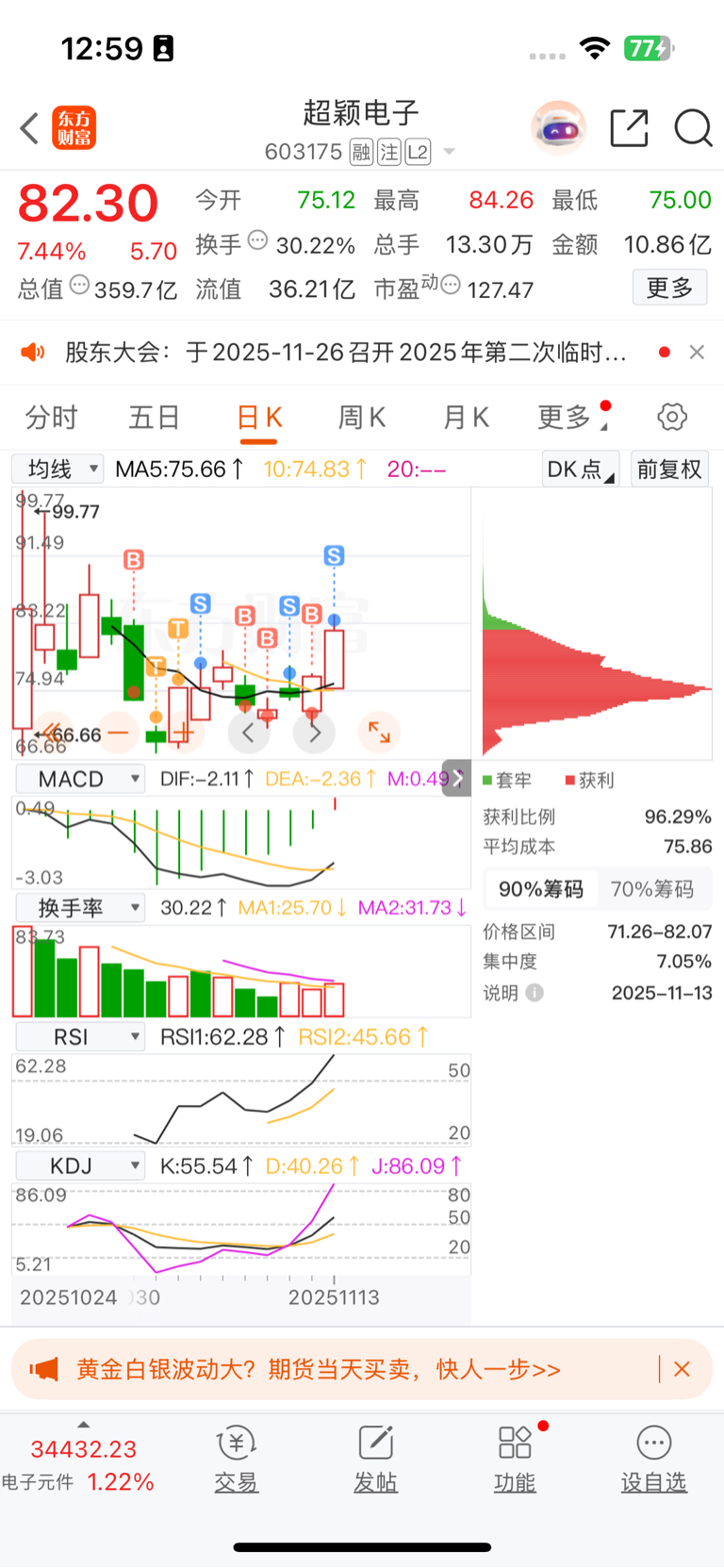 $超颖电子(SH603175)$ 点的位置就是买卖点,点评一下
