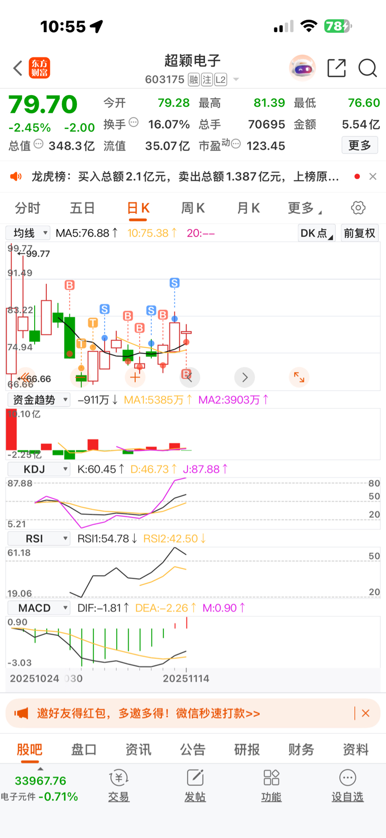 $超颖电子(SH603175)$ 点的位置就是买卖点价格。昨天有人说,每次高低点都控制这么好,可能吗?