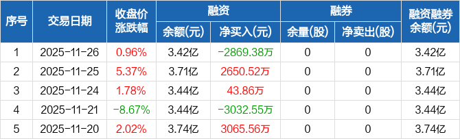 超颖电子:融资净偿还2869.38万元,融资余额3.42亿元(11-26)