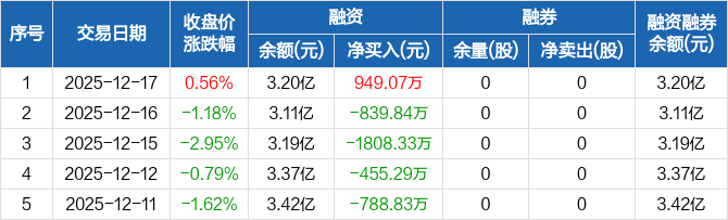 超颖电子:融资净买入949.07万元,融资余额3.2亿元(12-17)