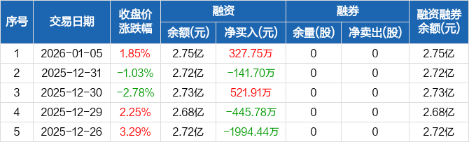 超颖电子:融资净买入327.75万元,融资余额2.75亿元(01-05)
