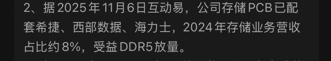 公司存储Pcb已经配套希捷,西部数据,海力士。公司将受益于ddr5放量。