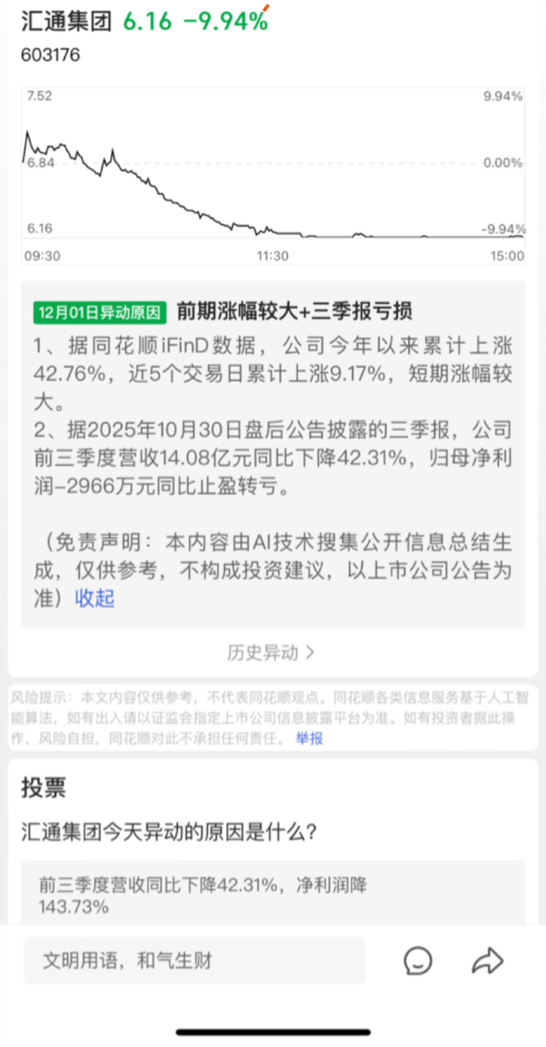 $汇通集团(SH603176)$ 大跌分析笑死人