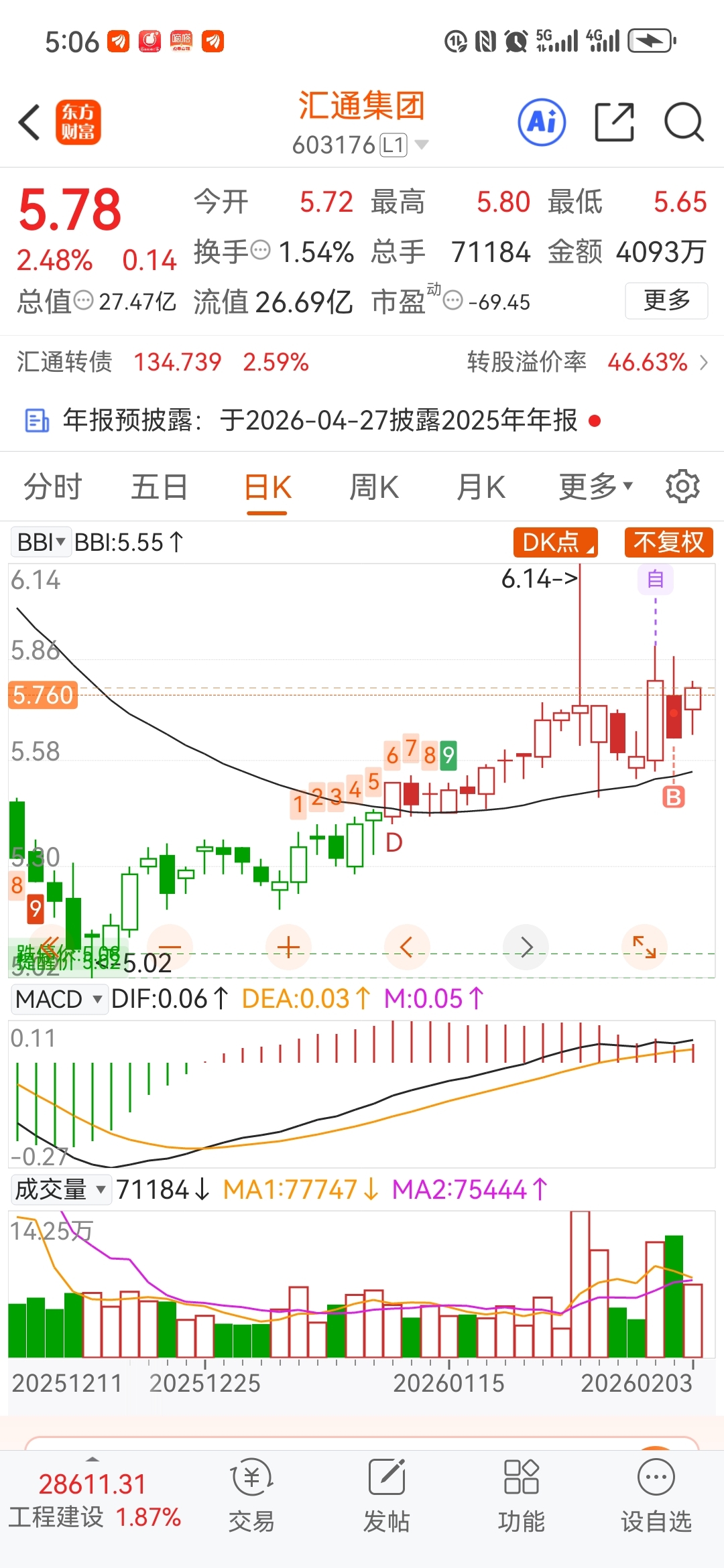 $汇通集团(SH603176)$ 低于5.5庄家赢