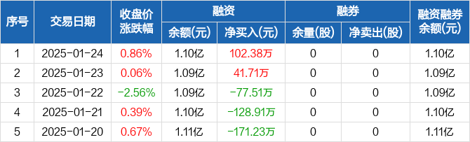 圣龙股份:融资净买入102.38万元,融资余额1.1亿元(01-24)