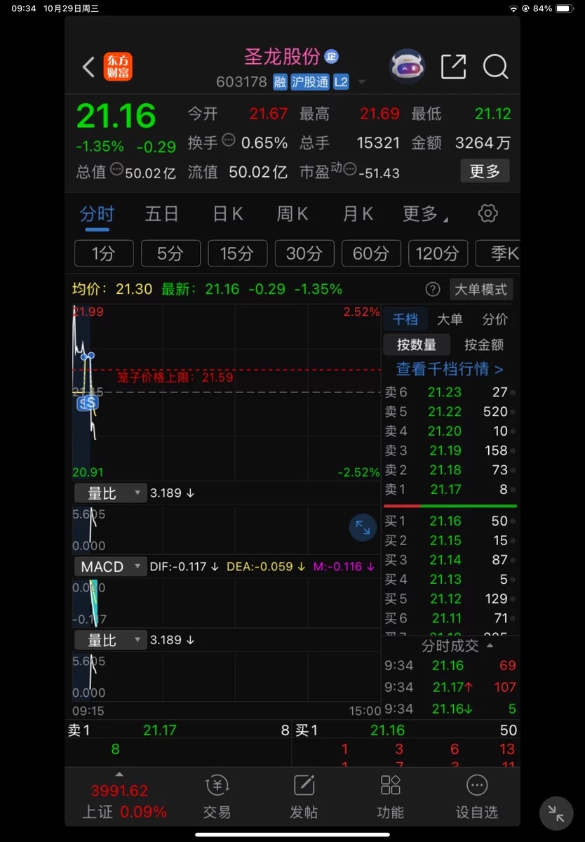 幸好我压力位算得准,特意挂低几分钱卖出,所以才能在21.68元精准逃顶