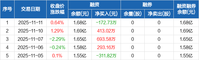 圣龙股份:融资净偿还172.73万元,融资余额1.68亿元(11-11)