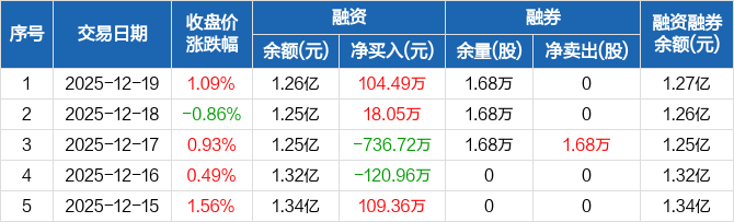 圣龙股份:融资净买入104.49万元,融资余额1.26亿元(12-19)