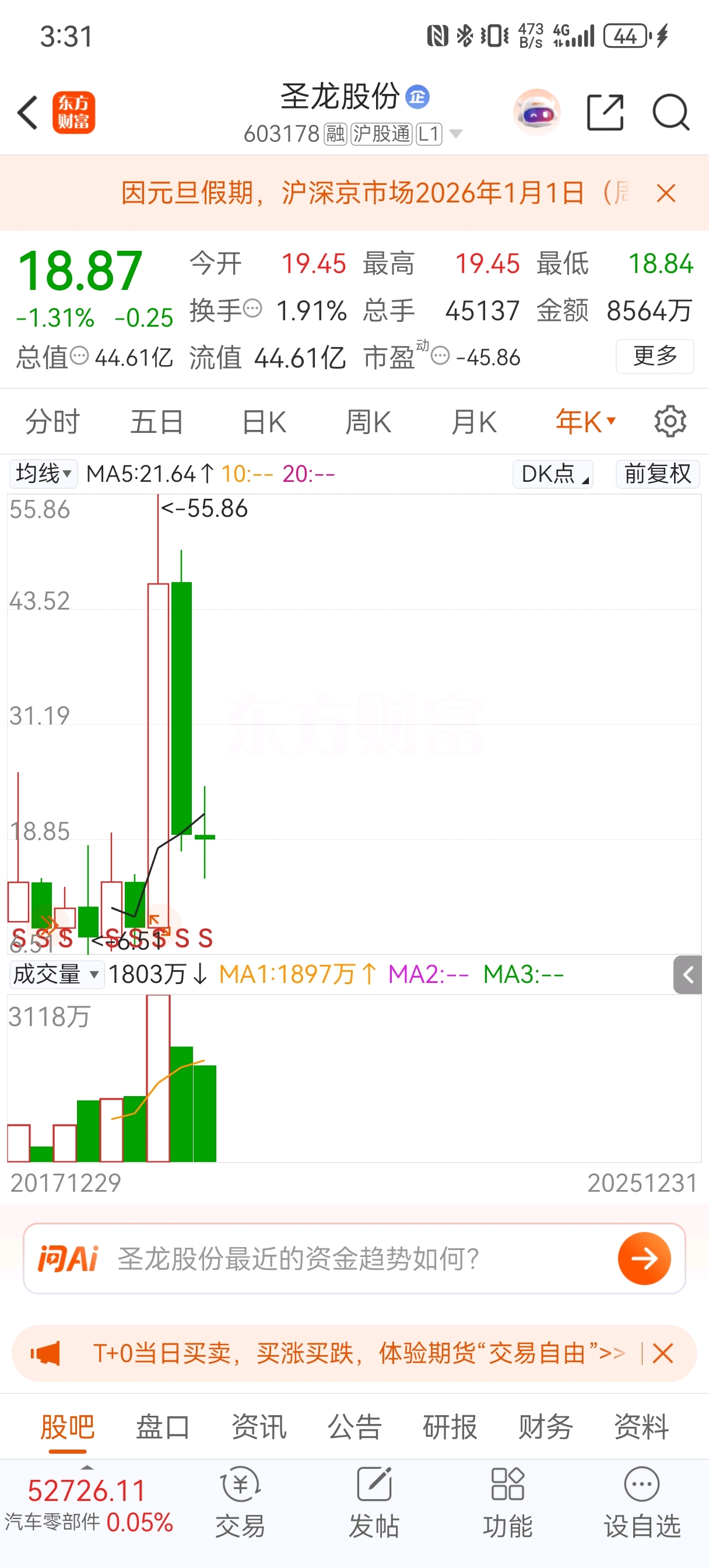 $圣龙股份(SH603178)$ 年度收官2025年下跌2.58%,看好2026年圣龙收复失地。
