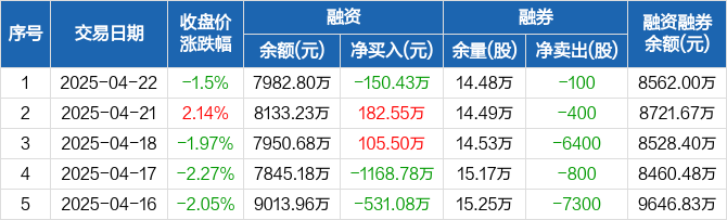 新泉股份:融资净偿还150.43万元,融资余额7982.8万元(04-22)