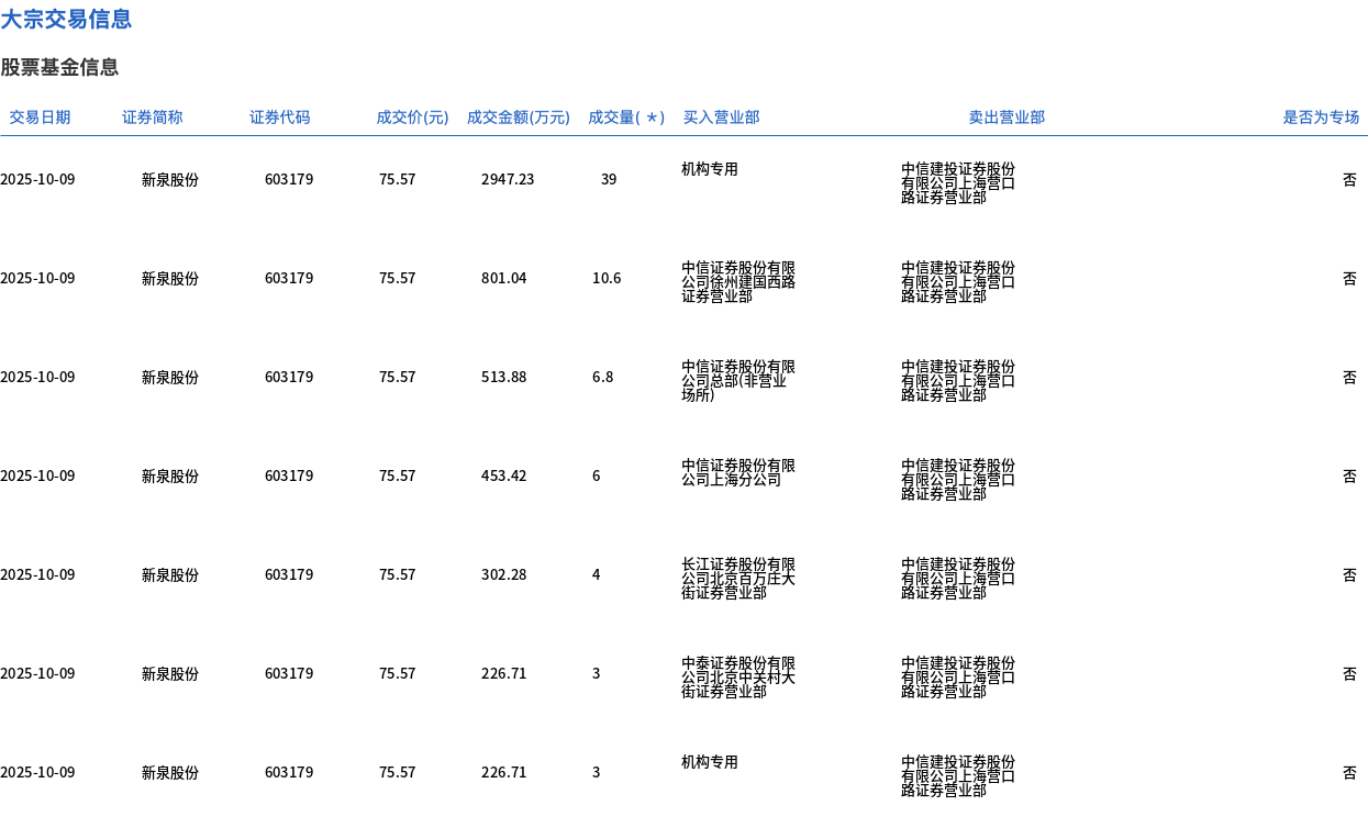 新泉股份今日大宗交易折价成交72.4万股,成交额5471.27万元