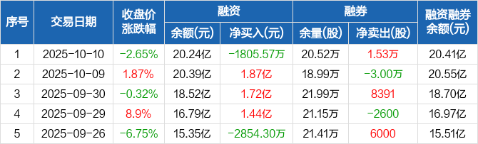 新泉股份:融资净偿还1805.57万元,融资余额20.24亿元(10-10)