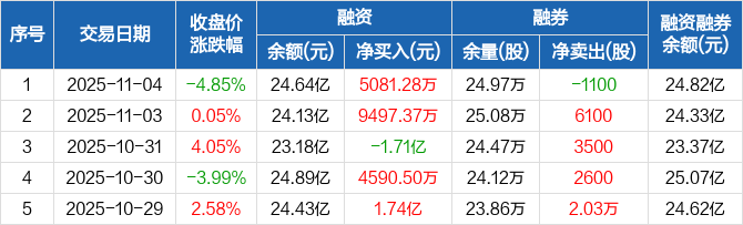 新泉股份:融资净买入5081.28万元,融资余额24.64亿元(11-04)