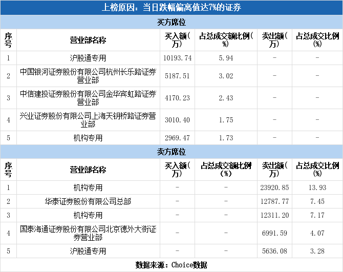 多主力现身龙虎榜,新泉股份跌停(11-10)