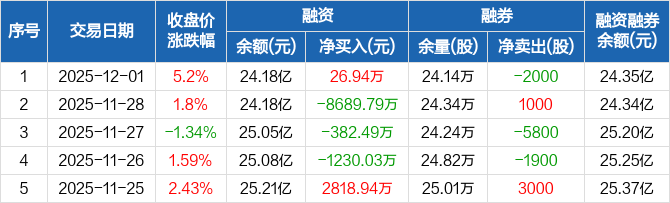 新泉股份:融资净买入26.94万元,融资余额24.18亿元(12-01)