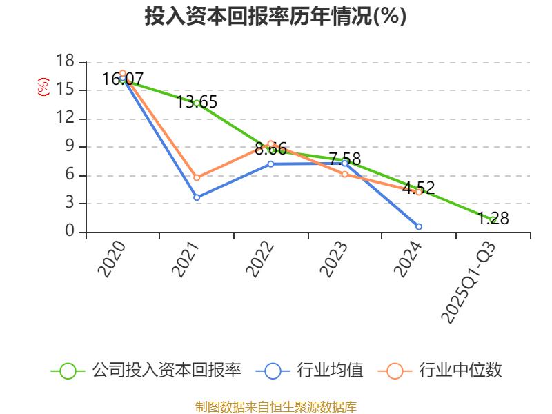 盈利能力方面, 2025年前三季度公司加权平均净资产收益率为2.29%,同比下降2.04个百分点。公司2025年前三季度投入资本回报率为1.28%,较上年同期下降1.48个百分点。