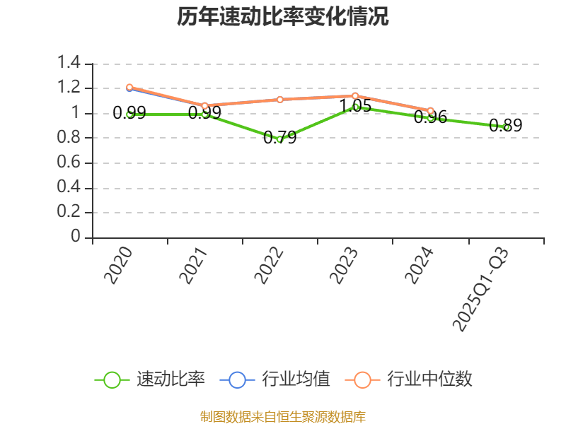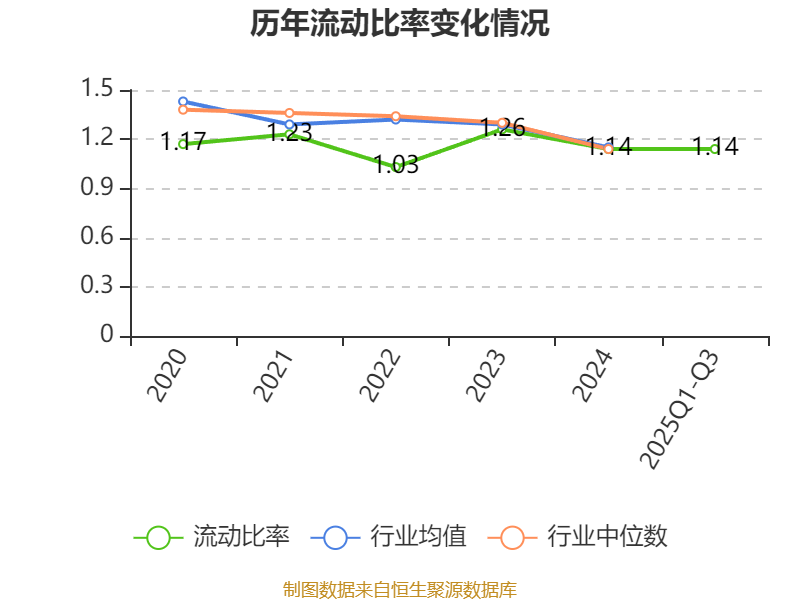 2025年前三季度,公司流动比率为1.14,速动比率为0.89。