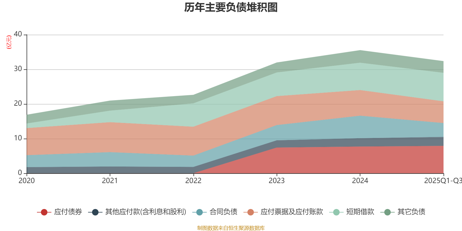 负债重大变化方面,截至2025年三季度末,公司合同负债较上年末减少38.45%,占公司总资产比重下降3.6个百分点;应付票据及应付账款较上年末减少15.3%,占公司总资产比重下降1.27个百分点;短期借款较上年末增加4.29%,占公司总资产比重上升1.2个百分点;应付债券较上年末增加2.6%,占公司总资产比重上升0.96个百分点。