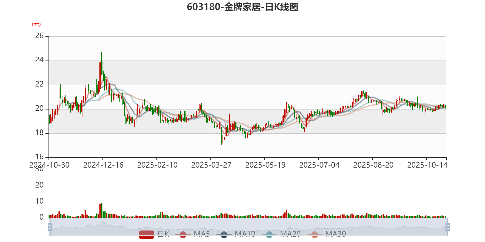 以10月29日收盘价计算,金牌家居目前市盈率(TTM)约为21.52倍,市净率(LF)约1.1倍,市销率(TTM)约0.91倍。