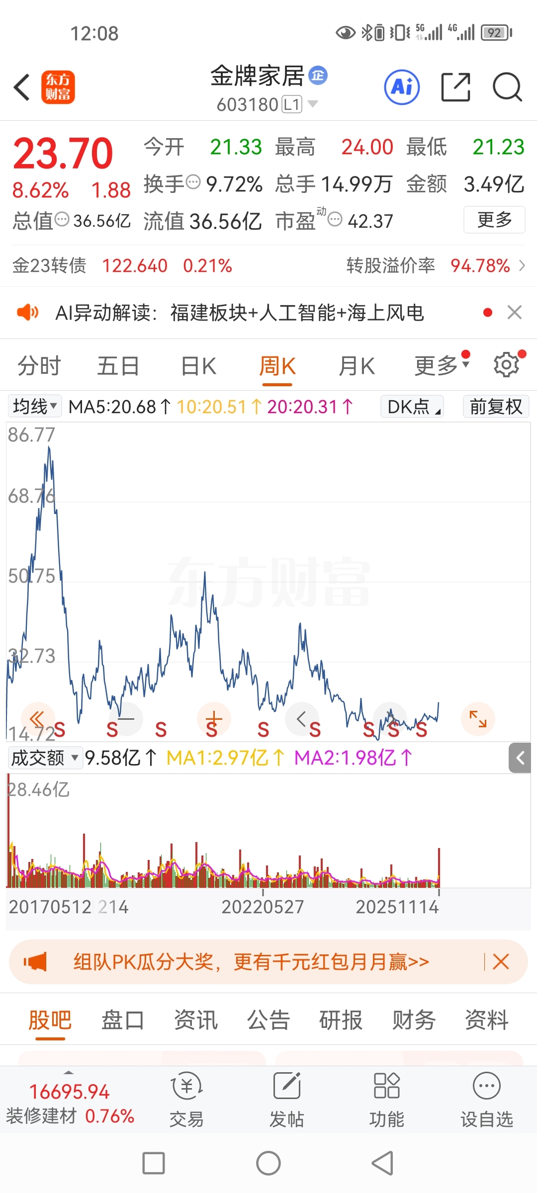 $金牌家居(SH603180)$ 历史大底,礼拜一买点。