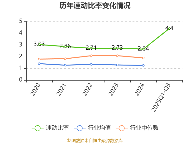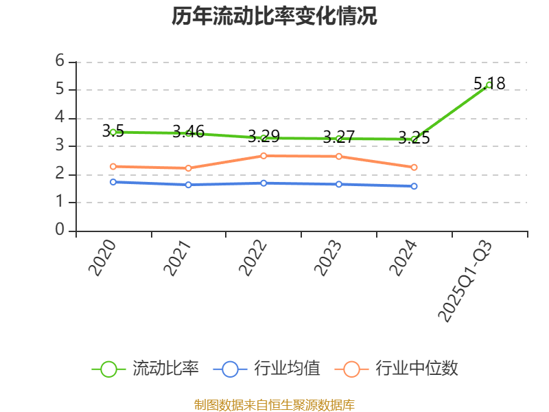 2025年前三季度,公司流动比率为5.18,速动比率为4.4。