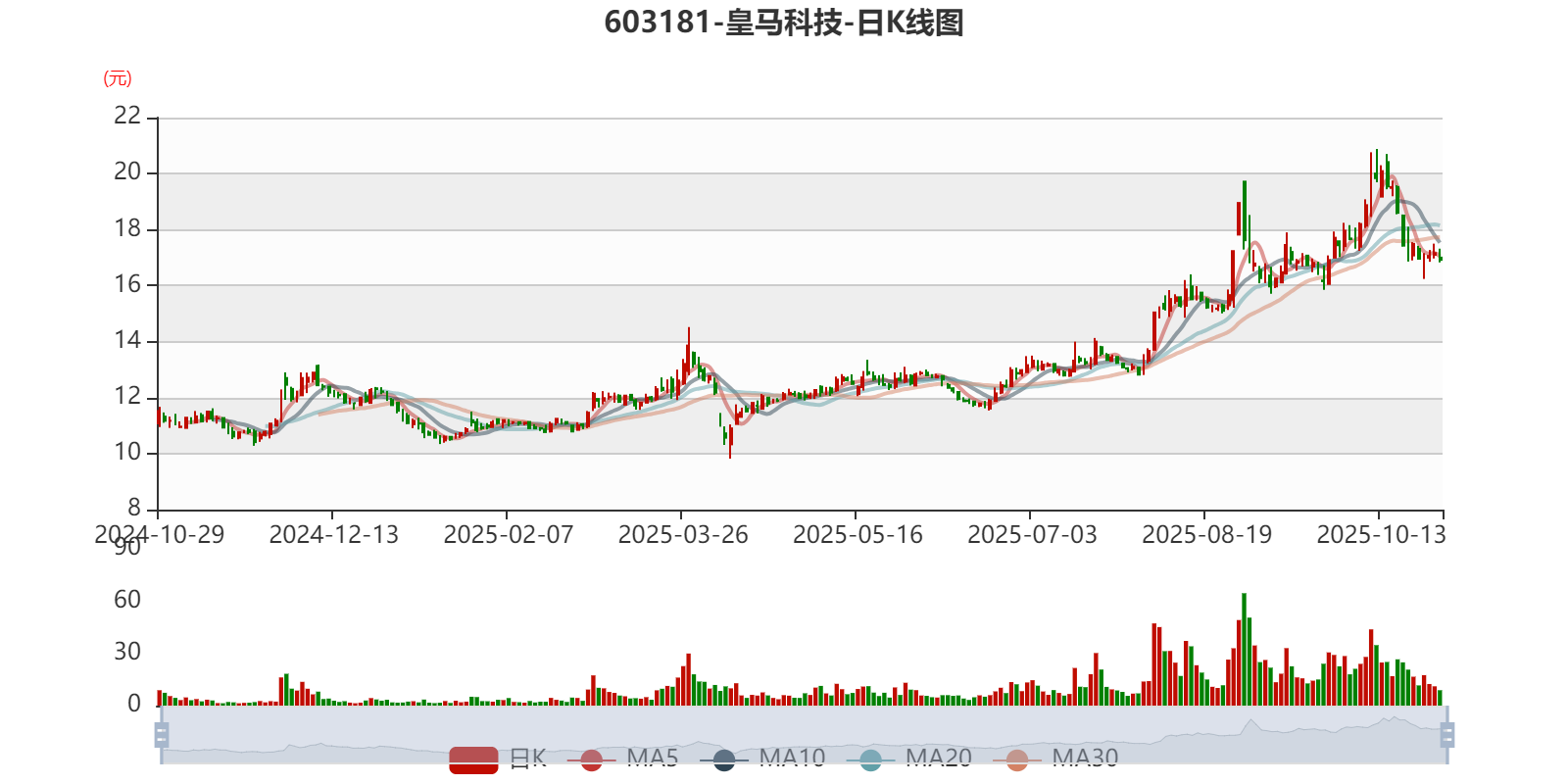 以10月28日收盘价计算,皇马科技目前市盈率(TTM)约为22.15倍,市净率(LF)约2.98倍,市销率(TTM)约4.1倍。