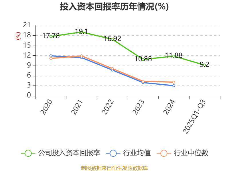 盈利能力方面, 2025年前三季度公司加权平均净资产收益率为10.27%,同比上升0.27个百分点。公司2025年前三季度投入资本回报率为9.2%,较上年同期上升0.55个百分点。