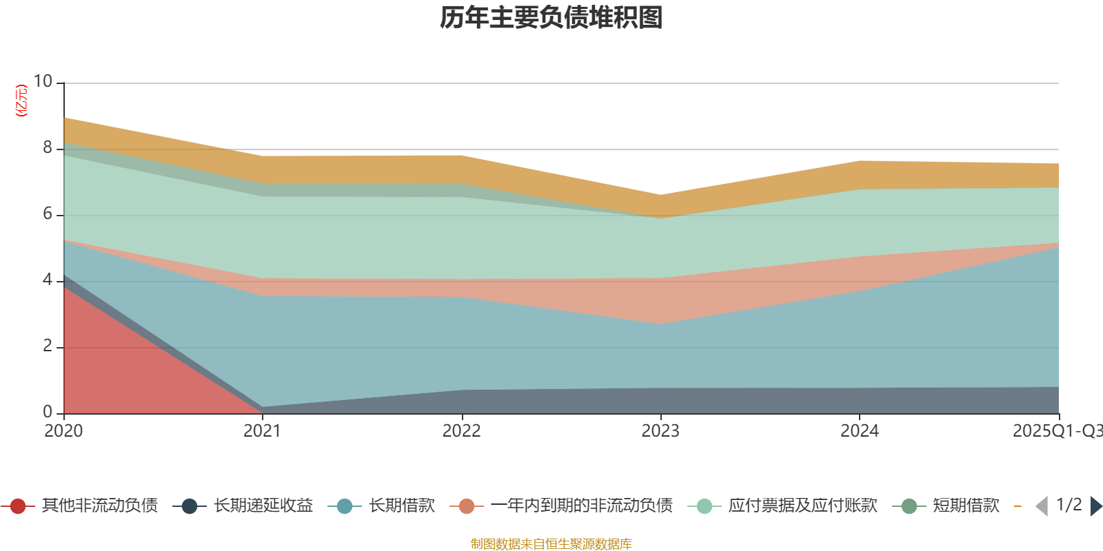负债重大变化方面,截至2025年三季度末,公司长期借款较上年末增加44.3%,占公司总资产比重上升2.76个百分点;一年内到期的非流动负债较上年末减少86.67%,占公司总资产比重下降2.37个百分点;应付票据及应付账款较上年末减少17.68%,占公司总资产比重下降1.16个百分点;合同负债较上年末减少34.49%,占公司总资产比重下降0.17个百分点。